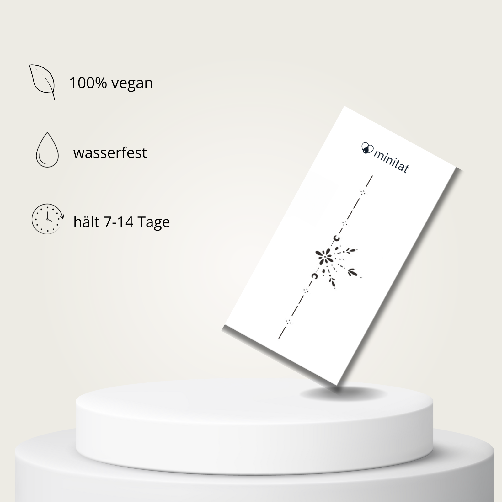 Dein minitat Tattoo ist, abhängig von der Position am Körper, 7-14 Tage sichtbar.