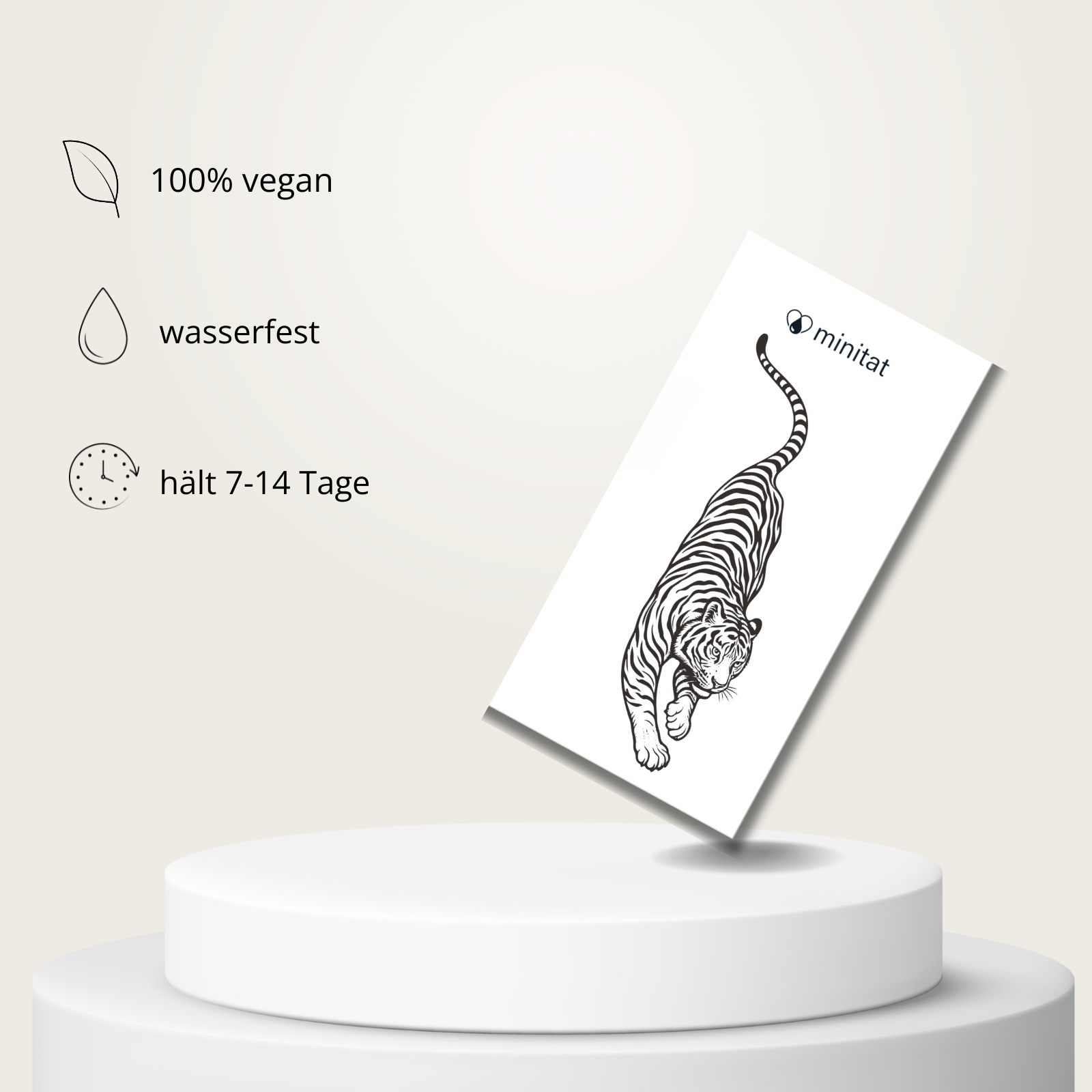 Dein minitat Tattoo ist, abhängig von der Position am Körper, 7-14 Tage sichtbar.