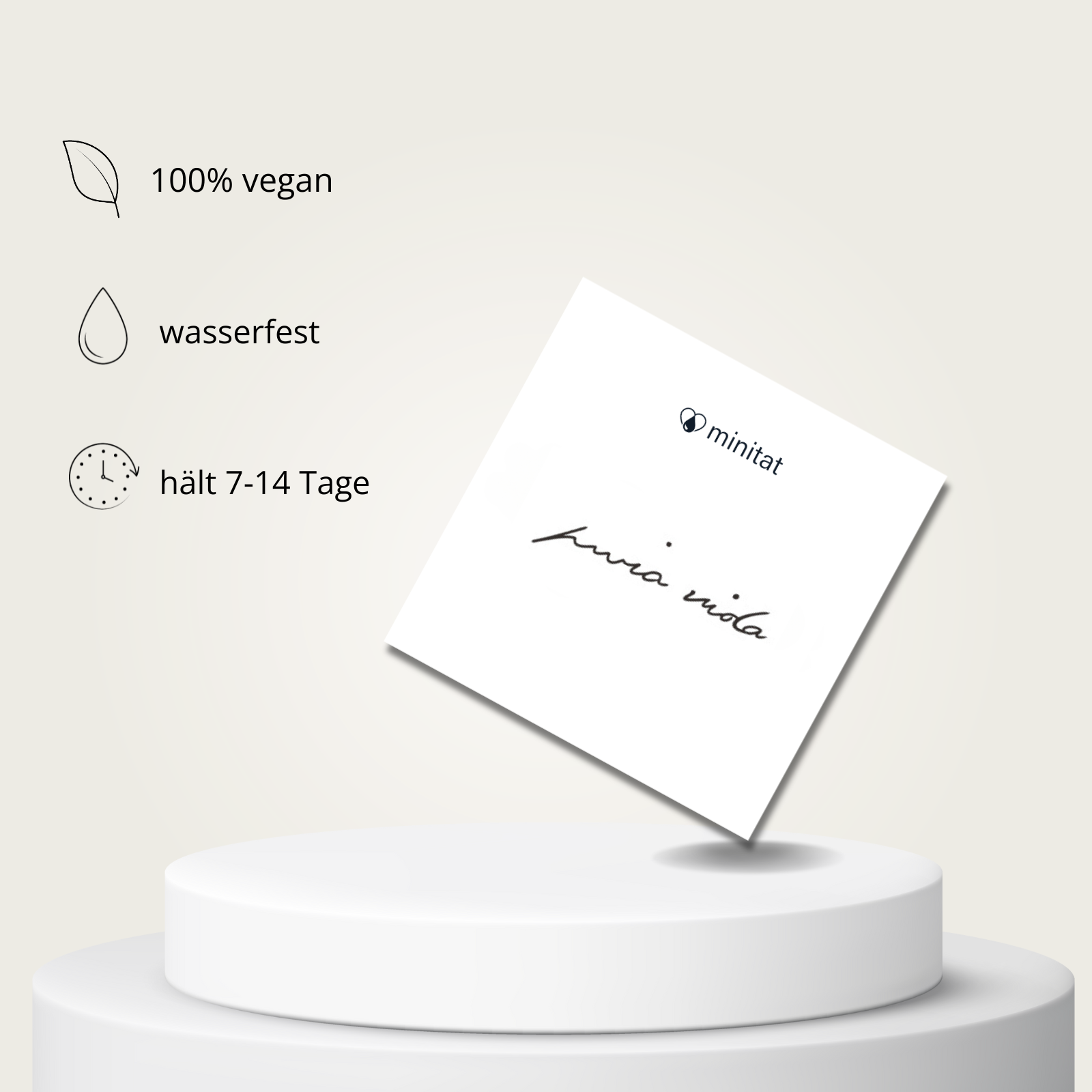 Dein minitat Tattoo ist, abhängig von der Position am Körper, 7-14 Tage sichtbar.