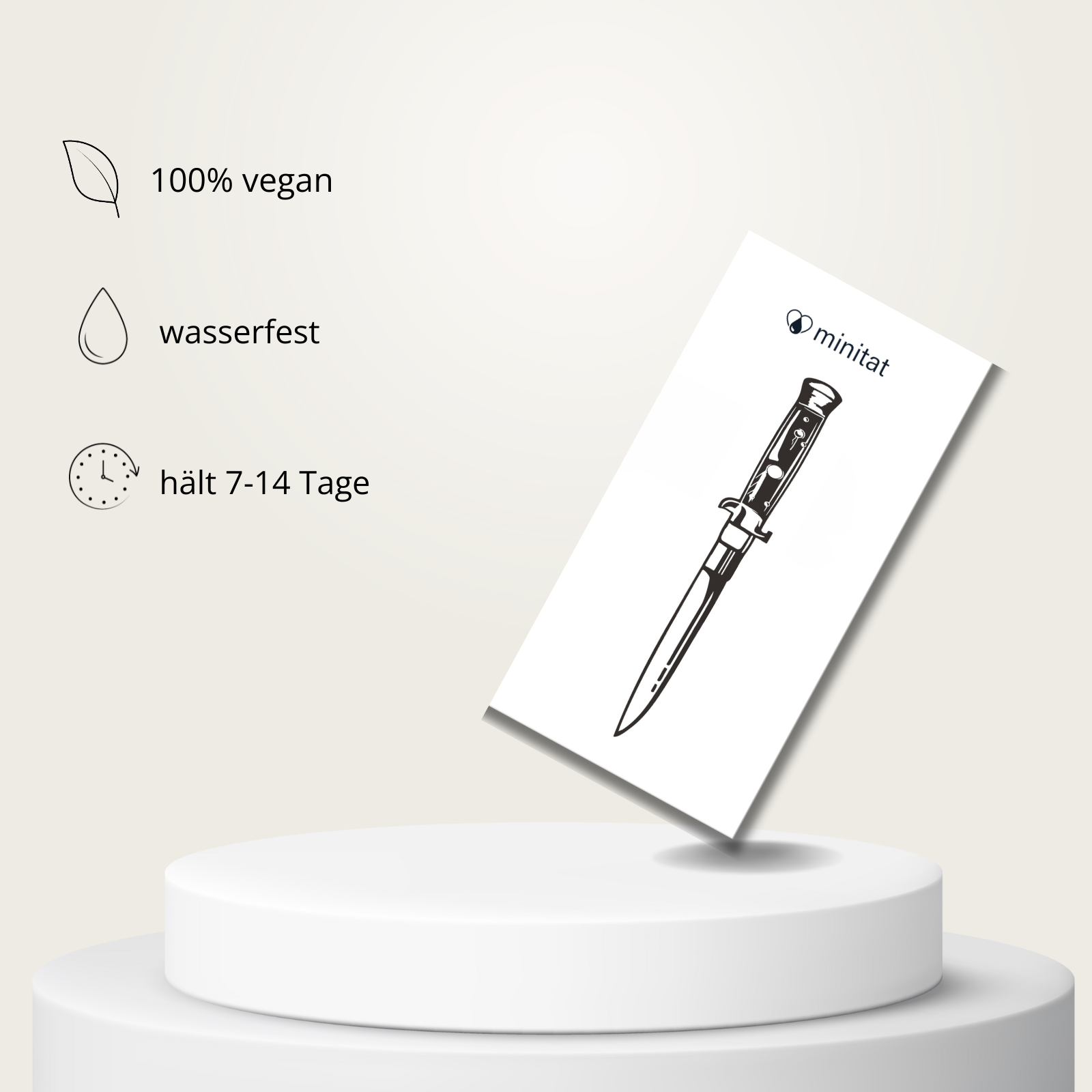 Dein minitat Tattoo ist, abhängig von der Position am Körper, 7-14 Tage sichtbar.