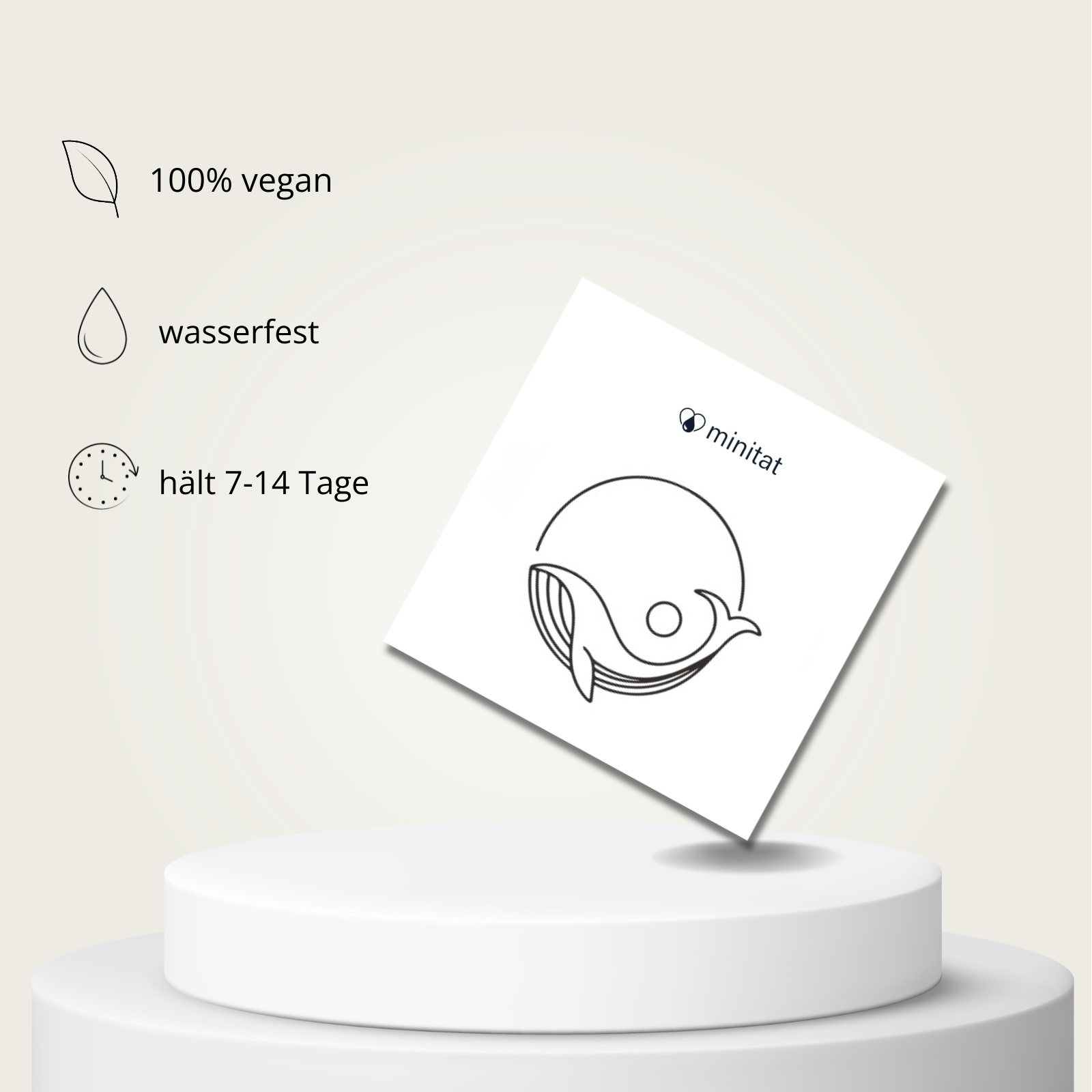 Dein minitat Tattoo ist, abhängig von der Position am Körper, 7-14 Tage sichtbar.