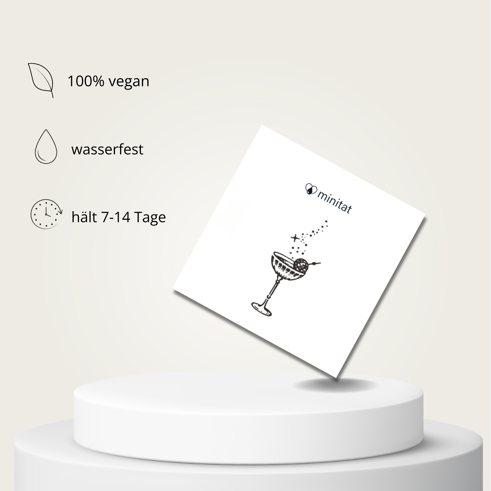 Einfache AnwendungDas Auftragen des minitat Tattoos ist in 1-2 Minuten erledigt. Falls du Hilfe benötigst, haben wir ein Video für dich erstellt.